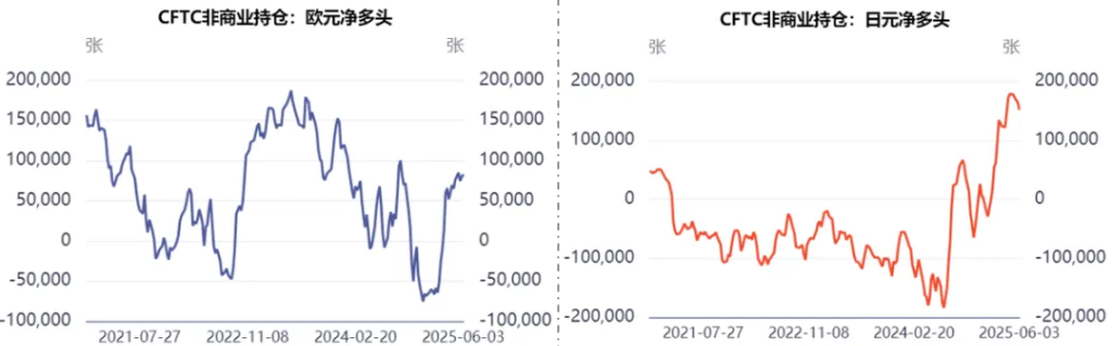 为啥都买欧元?除了上周四欧央行对“接近降息尾声”的强鹰表态之外信德,昨天凌晨美国财长贝森特称对欧盟极可能延长关税暂缓大限,也消除了欧元的部分尾部风险。所以哪怕美伊矛盾升级,欧元表现还是强于日元这个避险货币。当然,从CFTC持仓来看,日元多头也比欧元拥挤得多。