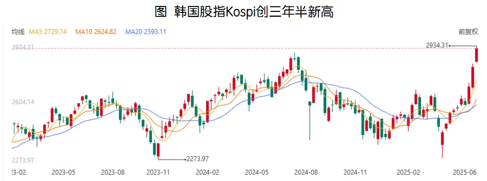 昨天这兄弟俩又携手大涨,不过似乎没看到什么新消息。台币主要是因为当地市场对美元的抛售,个人猜测可能又是因为美元贬值加速外汇对冲的flow?韩元则更多一点利好,新总统李在明上台后韩国股指Kospi涨幅超7%,创三年半以来新高,料想外资加速配置韩股也大大推升了韩元。